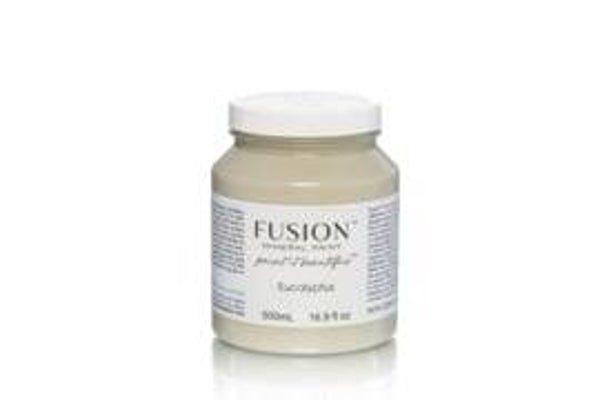 Fusion Mineral Paint Eucalyptus. Gedempt zacht groen met grijze ondertoon.