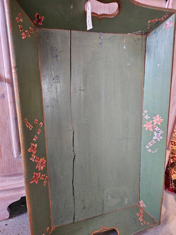 Mangelbak, sleets brocante mooi groene patina.