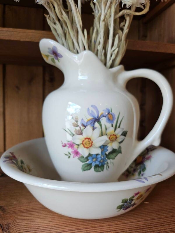 Engels Lampet set XS, een zeer lief setje. Engels porselein. Fleurig en ademt het voorjaar. Kleine gebruikerssporen, nihil.