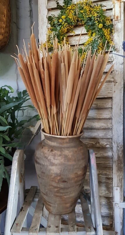 Typha, de Lisdodde's of in de volksnaam bekend als de sigaren, zijn weer helemaal terug van weggeweest. Vroeger verboden om te plukken. Nu speciaal gekweekt om ze te verwerken en te verwerken in je boeket.