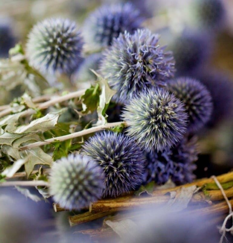 Echinops, gedroogde blauwe kogeldistels. Mooie naturel van kleur.