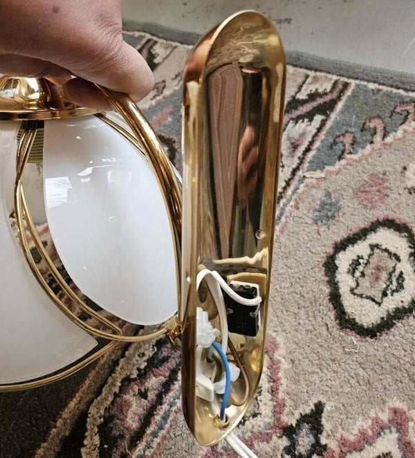 Vintage lampen set, messing met wit glas, tulpen model. De set is in een zeer nette staat.