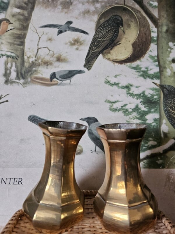 Koperen vaasjes, zware kwaliteit. Kleine gebruikerssporen.