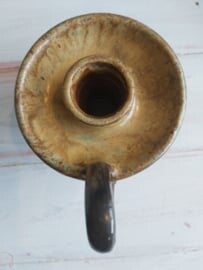 Vintage kandelaar een prachtig aardewerk kandelaar met oker geel, vleugje groen. Minimale gebruikerssporen. Inclusief rustiek groene kaars.