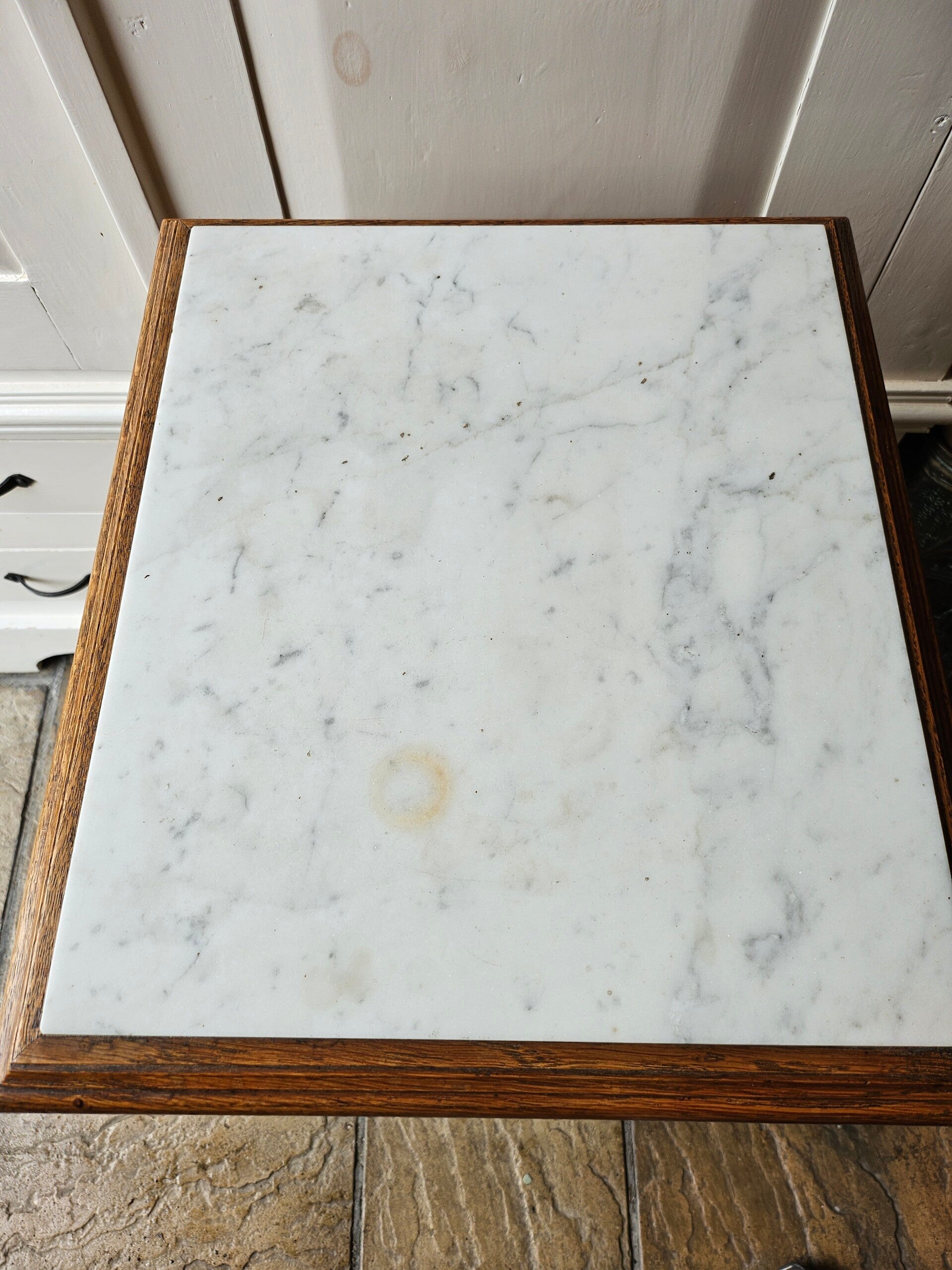 Nachtkastje, met marmerblad. Marmerblad zit vast is in een zeer nette staat iets verkleurd. Hout heeft wat gebruikerssporen.