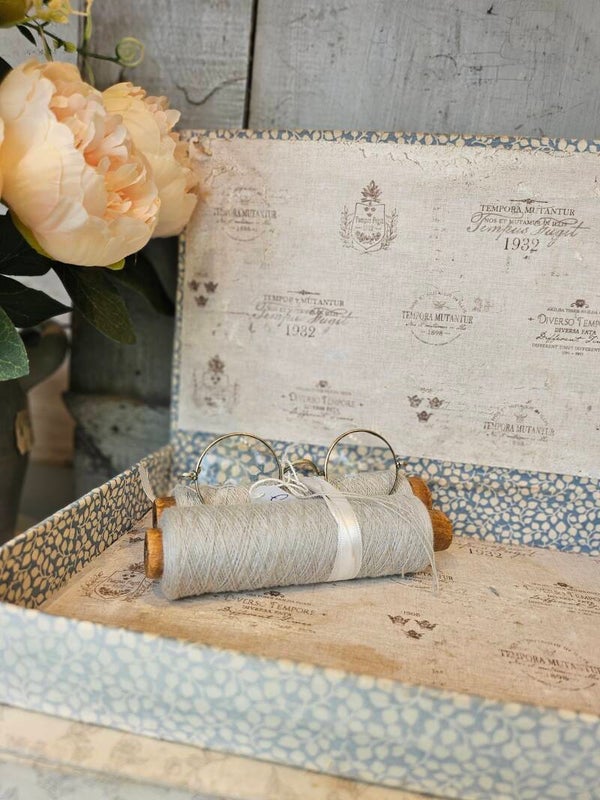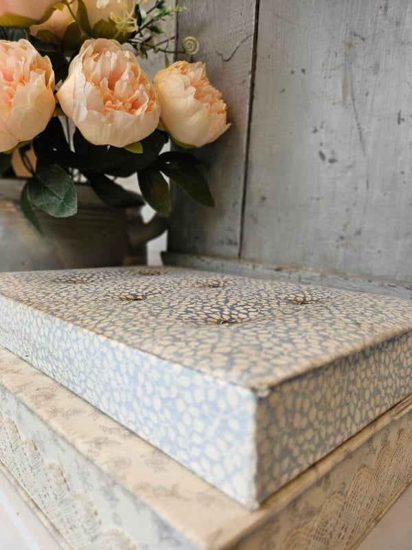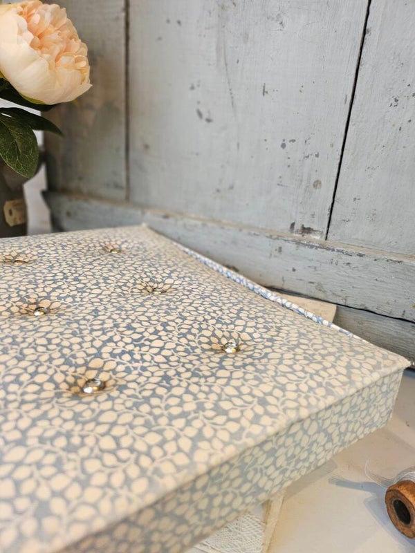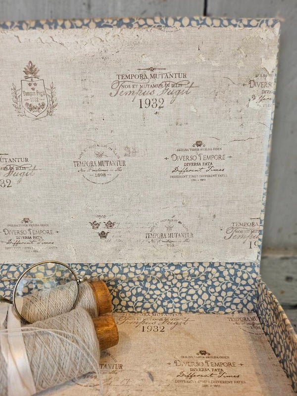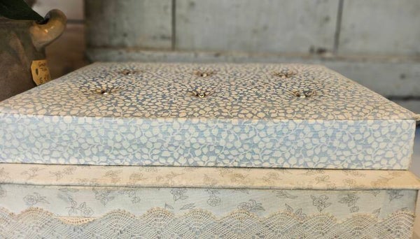 Frans stofdoosje, romantisch blauw, iets wat sleets.
