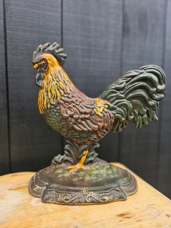 Gietijzeren Haan, een stoere fleurige Haan. Een eyecatcher in de tuin. Prachtig van kleur.