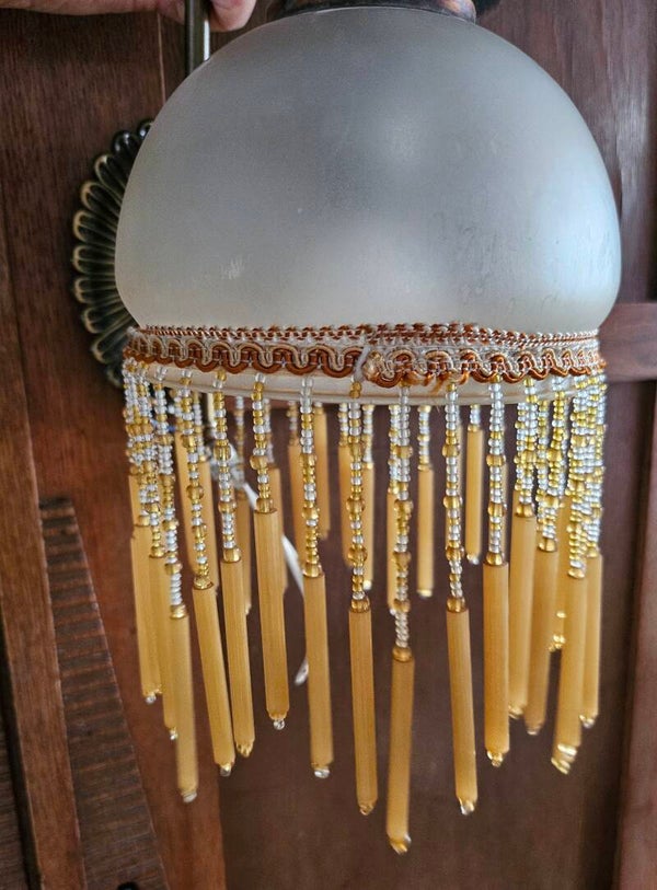 Charleston lampje, vintage style. Lampje is in een zeer nette staat. De kraalsliertjes zijn zo goed als intact.