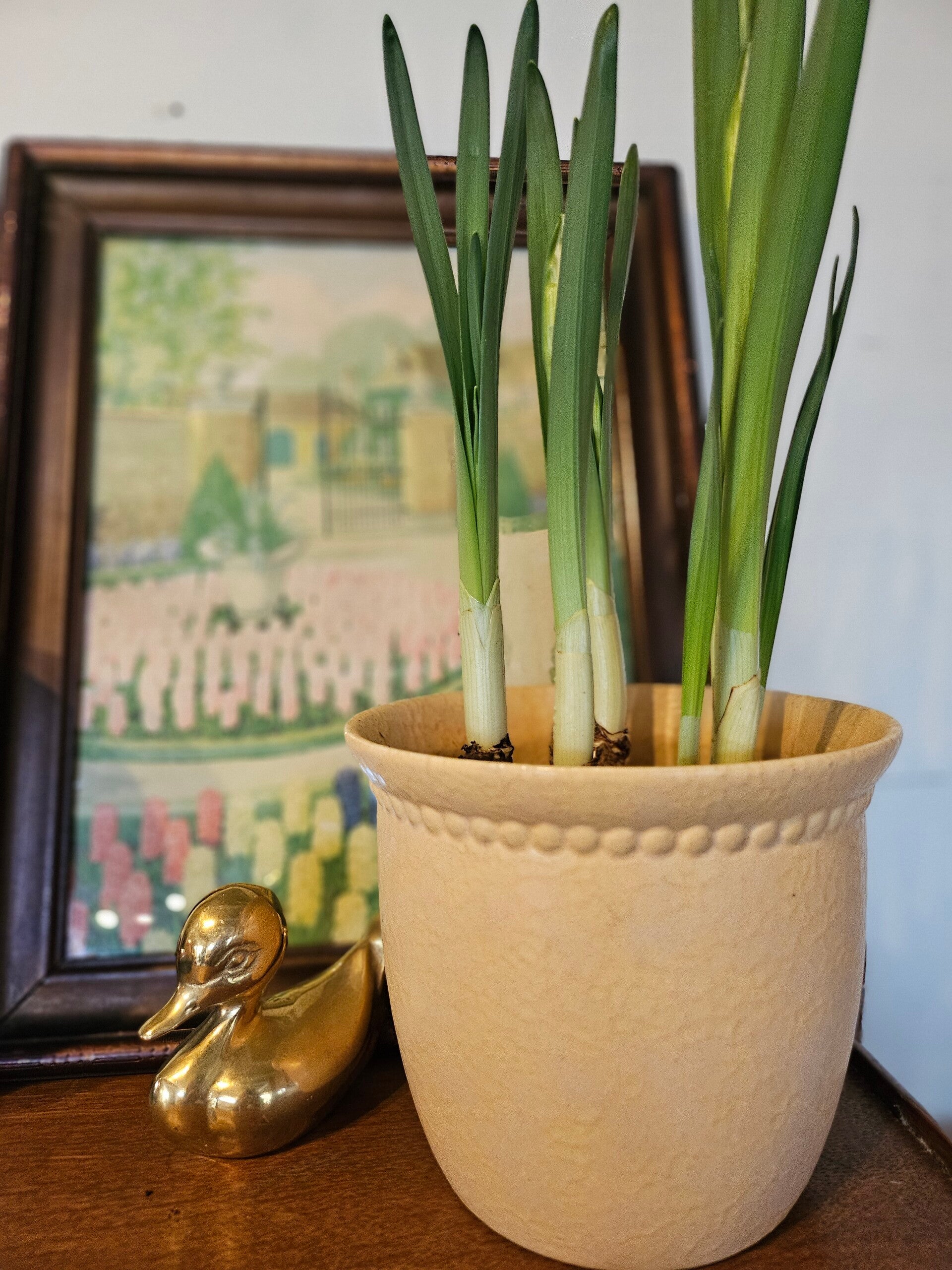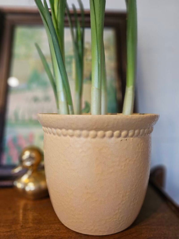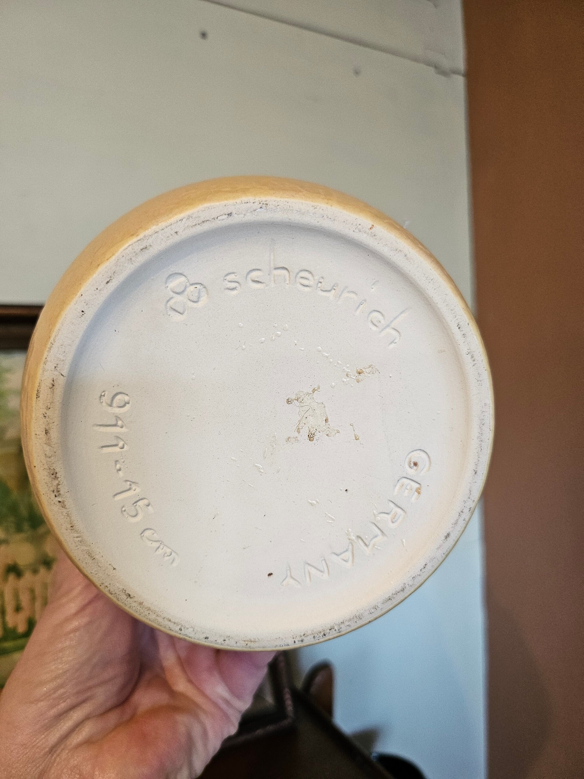 Bloempot Scheurich, zacht geel van kleur en in een bijna perfecte staat.