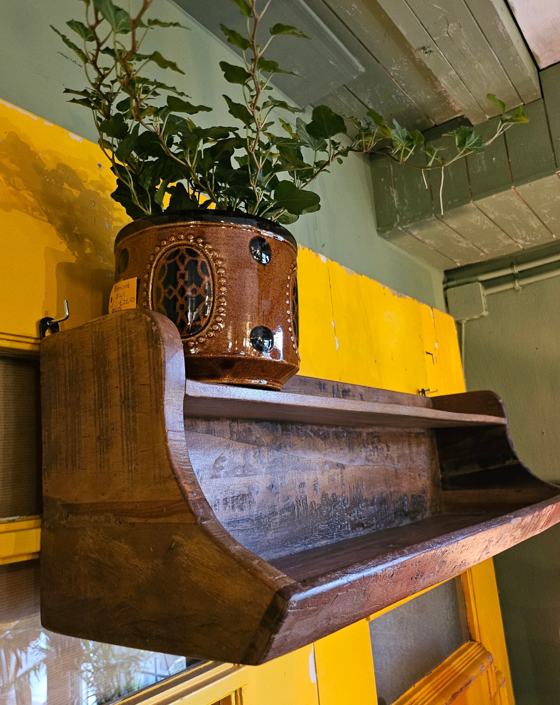 Deze wandplank kun je eenvoudig ophangen door de 2 haken aan de achterkant. Deze plank bestaat uit een soort schap waar je spullen in kunt opbergen en bovenop kun je ook eventueel nog wat mooie items uitstallen.