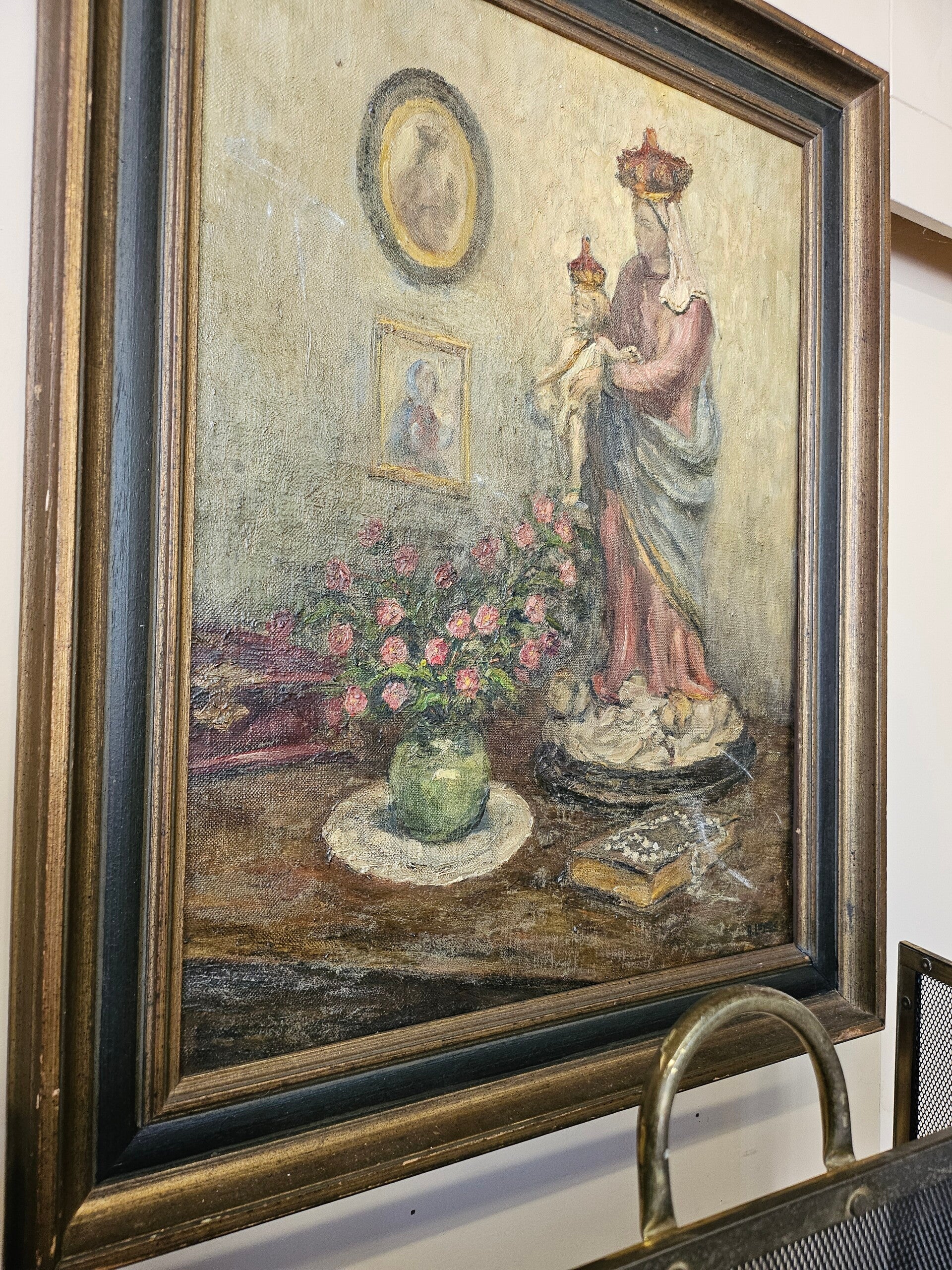 Frans brocante schilderij op doek. Heeft wat gebruikerssporen.