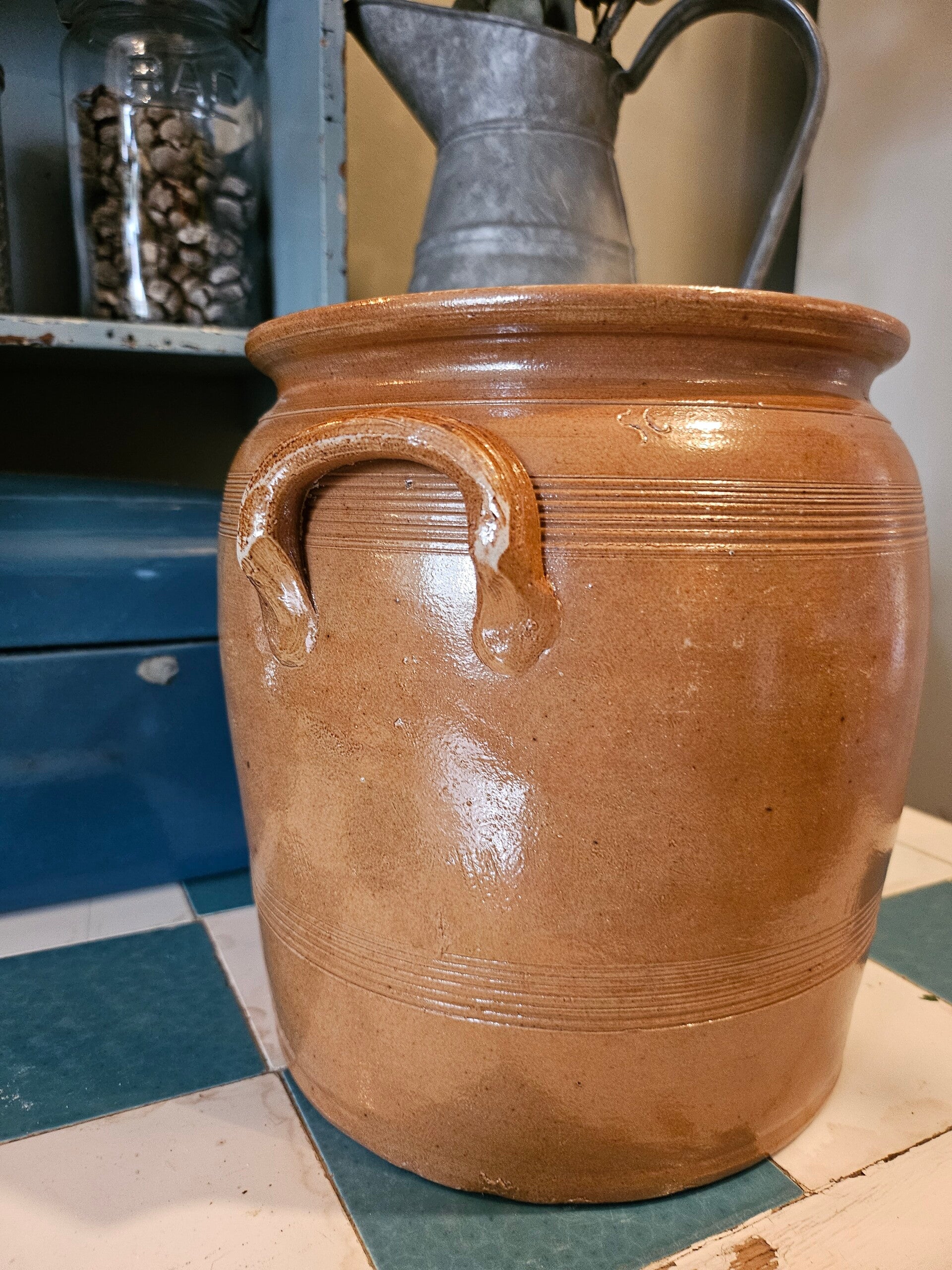Franse grespot. De grespot mag toch in geen brocante huis ontbreken. Zo decoratief in de keuken of met een plant.