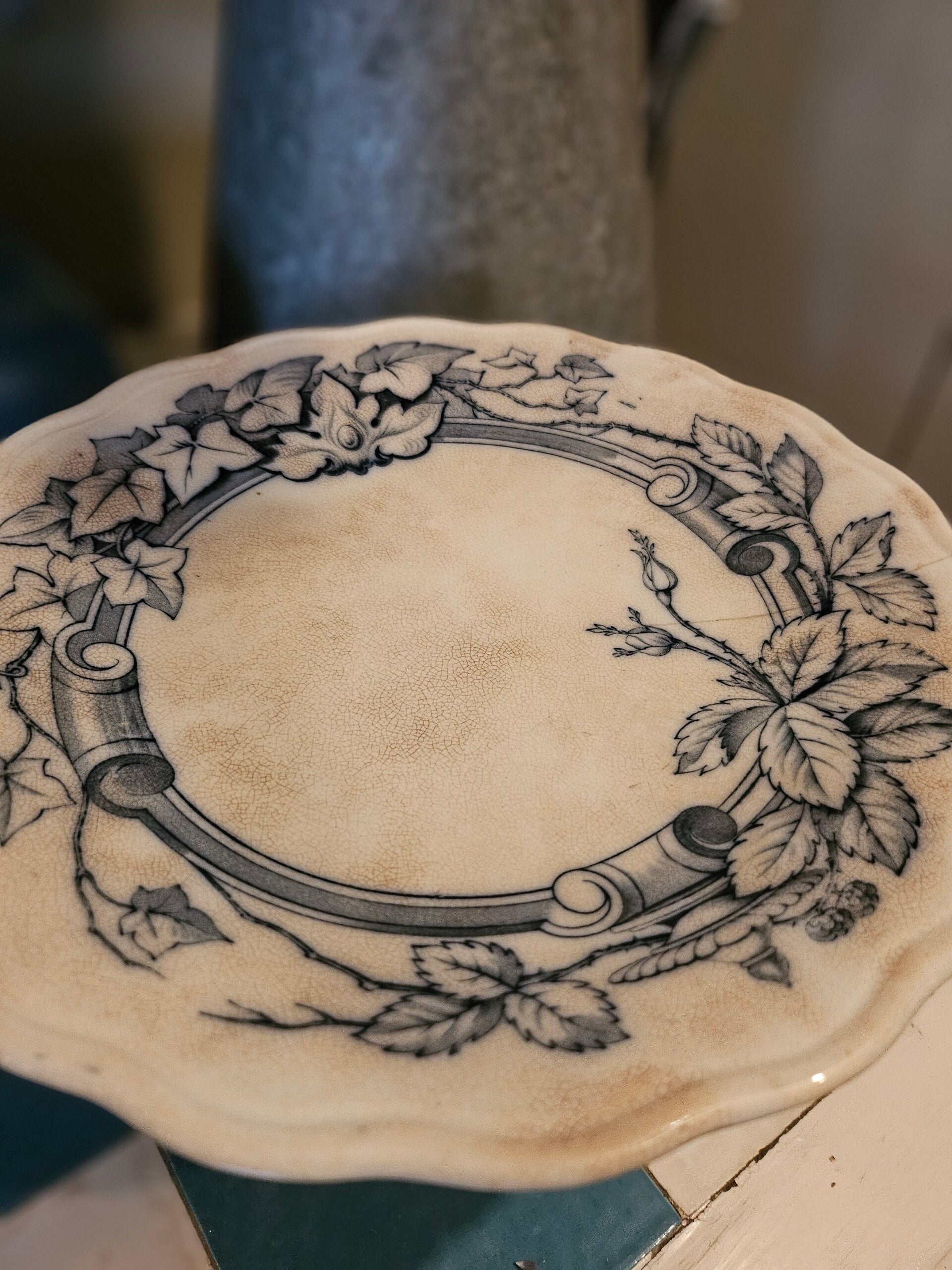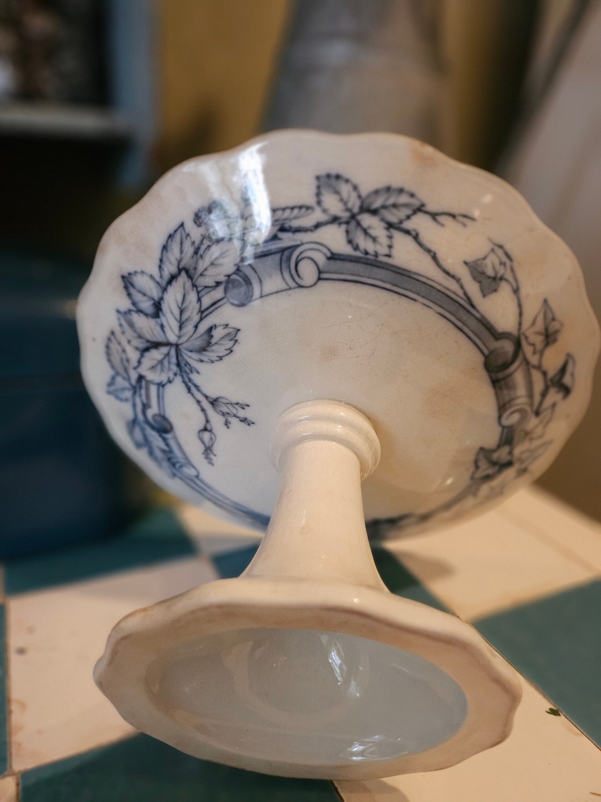 Serveerschaal / taartschaal met een prachtig vloeiblauw decor. Het betreft een Engelse schaal. Moore & Co. uit Engeland, voorzien van een kenmerkend blauw bloemendecor. Schaal heeft kleine gebruikerssporen waaronder een lichte breuk.