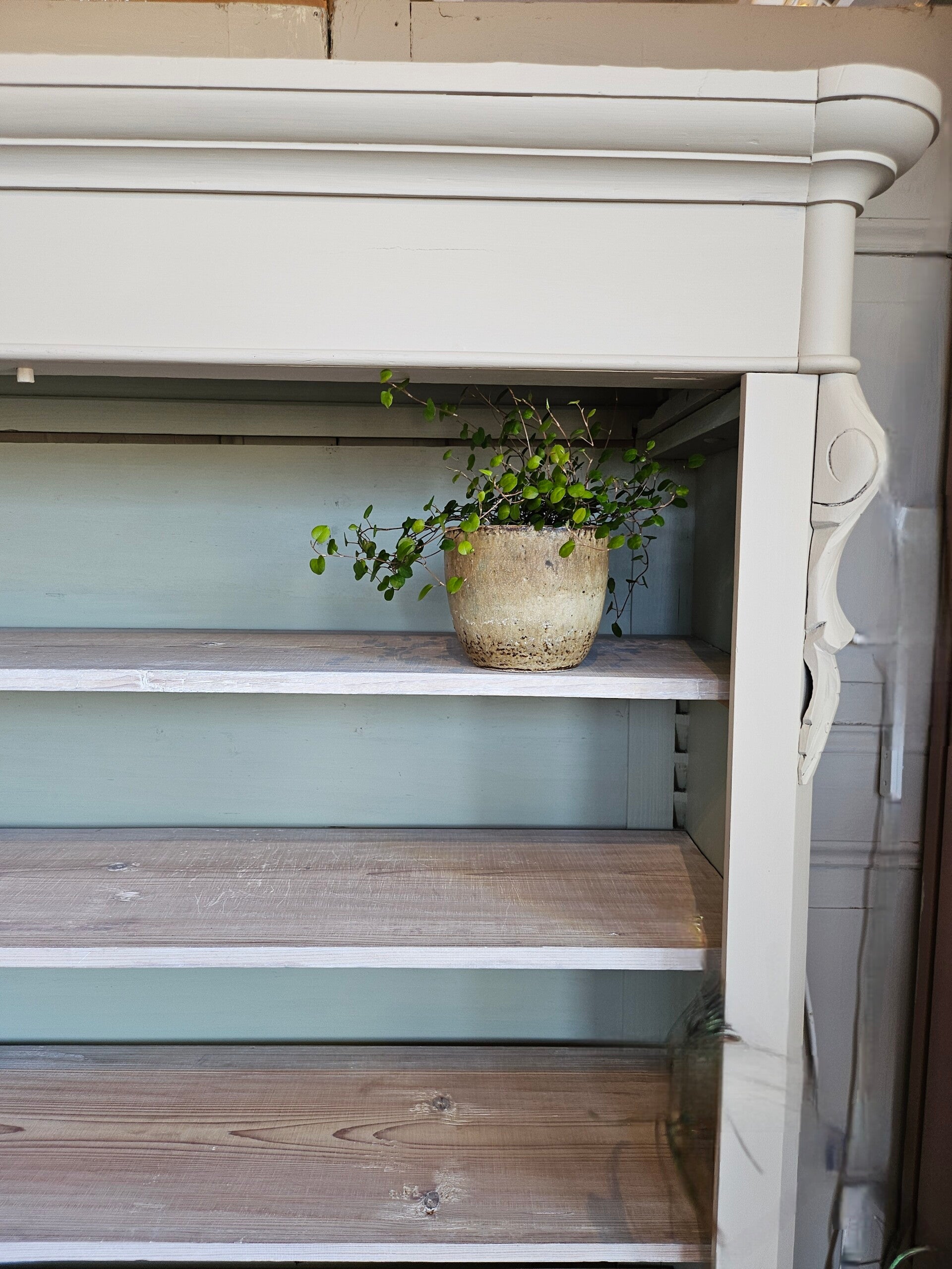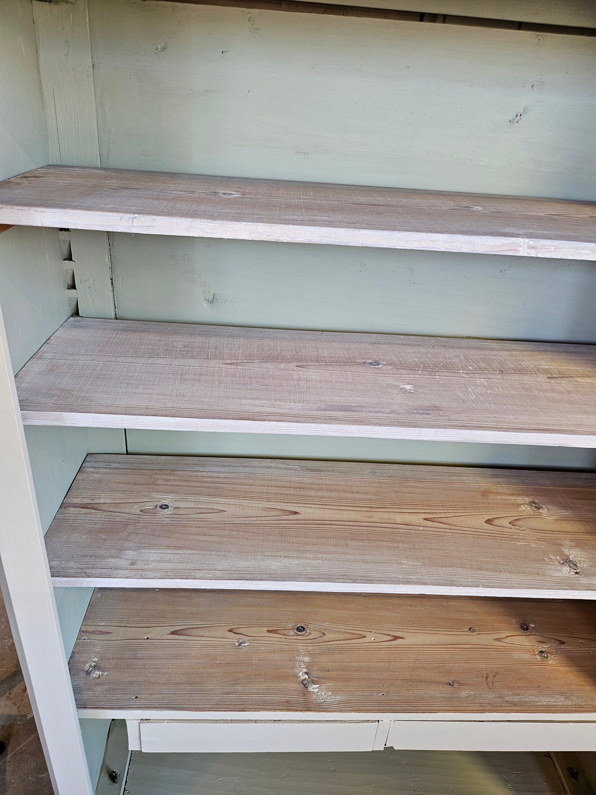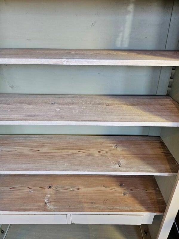 Planken naar eigen indeling en smaak te plaatsen. Kastje is geschilderd van binnen en buiten met Fusion Mineral Paint. De planken zijn met white was olie behandeld.