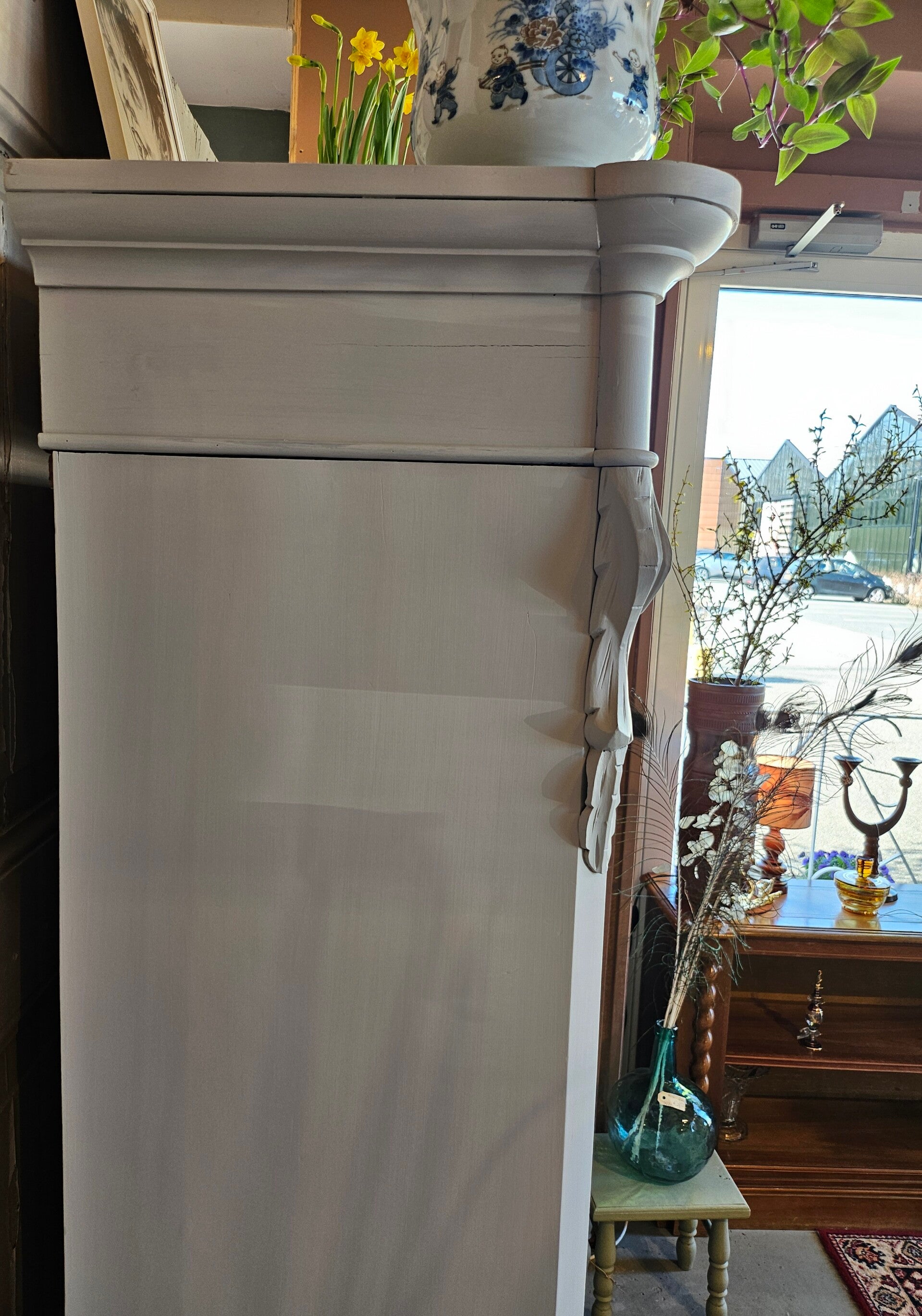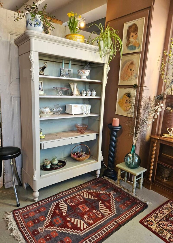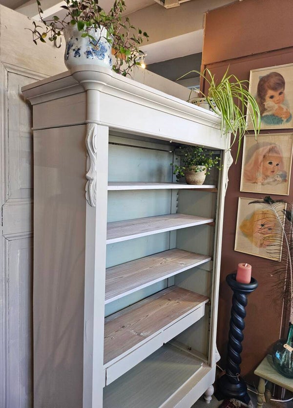 Boekenkast/ Pronkkastje. Het is van orgine een meidenkastje, helaas bleken de deurtjes te krom geworden. Zonder deurtjes is het ook echt een schattig biedermeier boekenkastje/ pronkkastje.